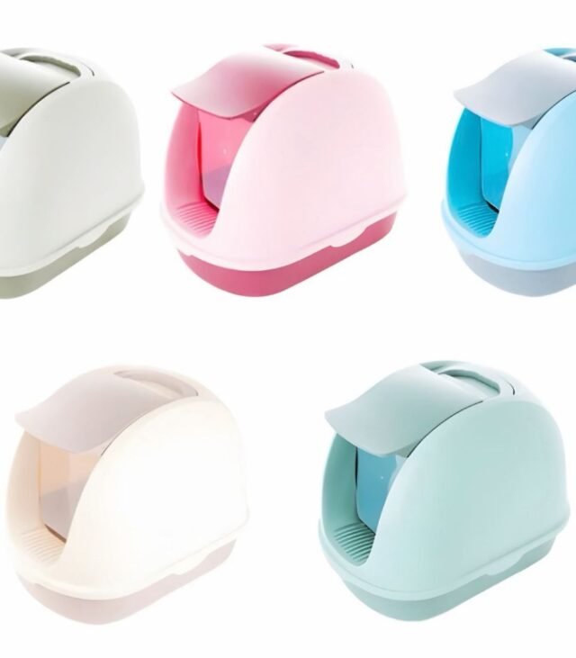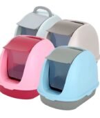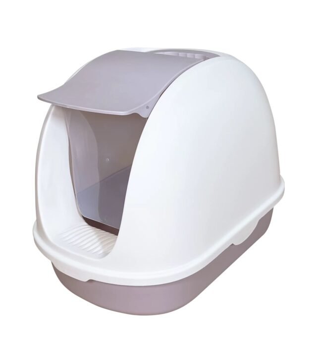 Arenero cerrado con puerta abatible que controla olores y mantiene tu hogar ordenado. Diseño moderno, resistente y fácil de limpiar.