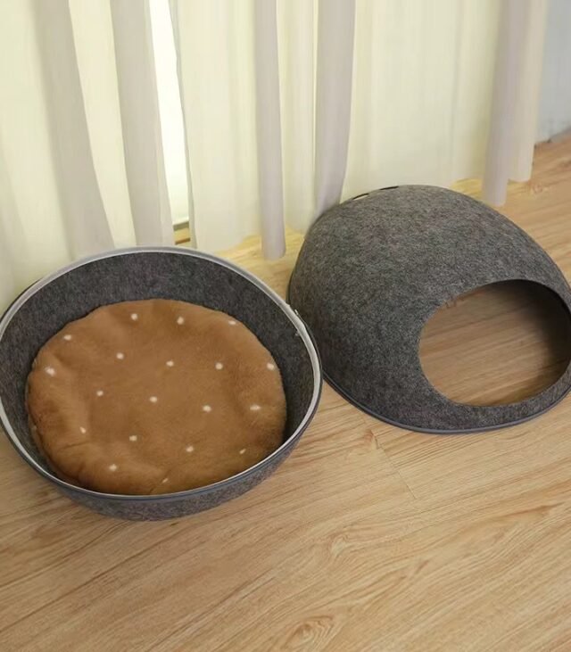 Su diseño semi cerrado le proporciona mayor sensación de seguridad, ideal para gatos que aman esconderse y dormir tranquilos. Fabricada en material suave y resistente, perfecta para el descanso diario de tu mascota.