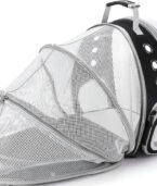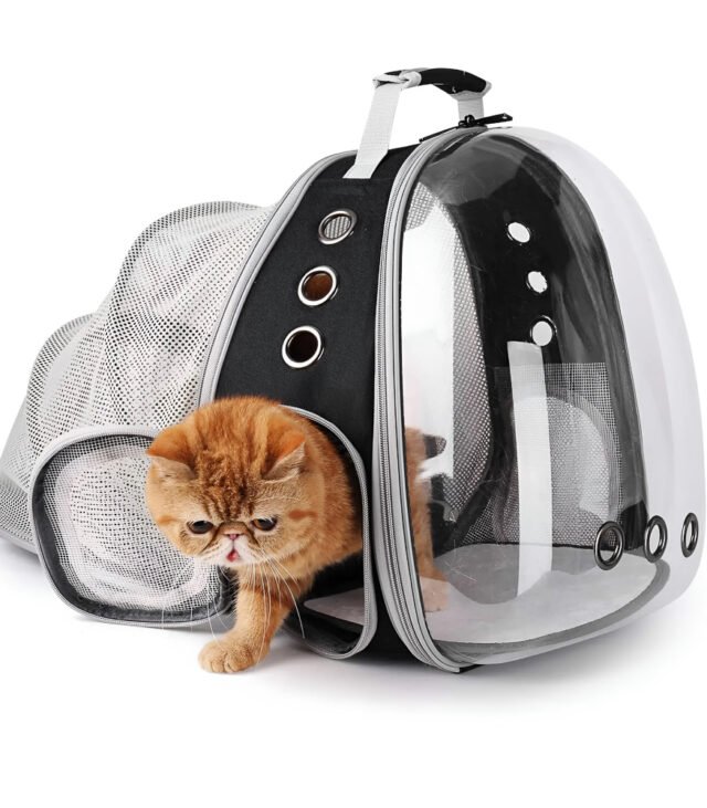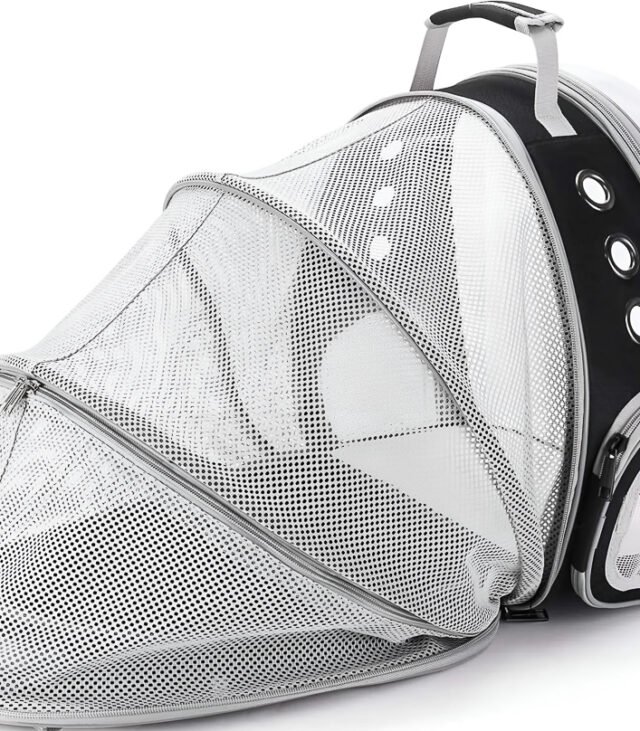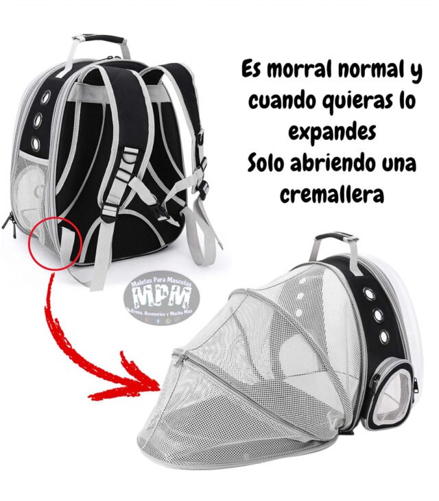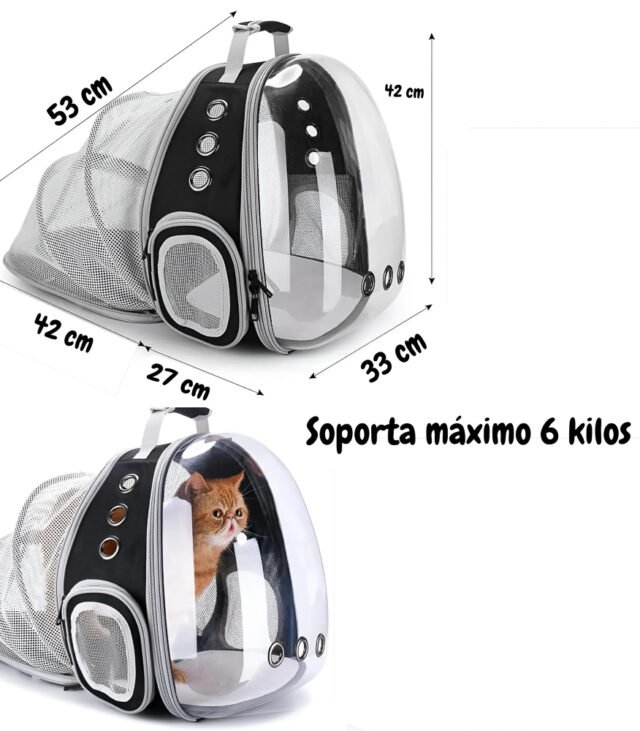 Esta moderna mochila transportadora expandible es ideal para viajes, salidas al parque o visitas al veterinario. Su diseño con transparente permite a tu mascota disfrutar del paisaje, mientras tú te aseguras de que esté segura, fresca y cómoda.