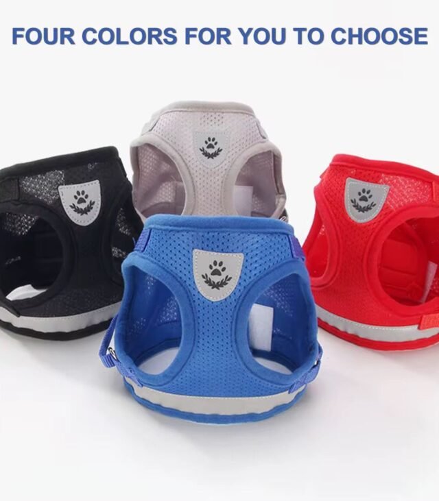 Arnés pechera en material de malla transpirable, con franja reflectiva en el pecho y doble cierre para mayor seguridad; super cómodo, suave y seguro. La mezcla perfecta entre elegancia y confort. Incluye la correa